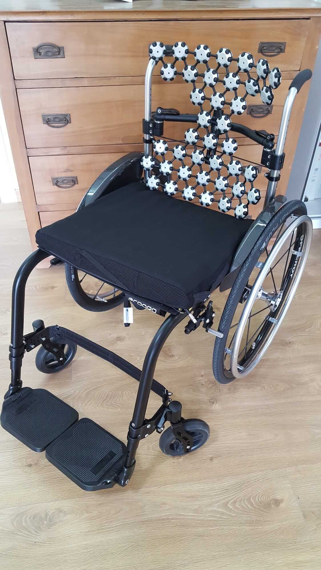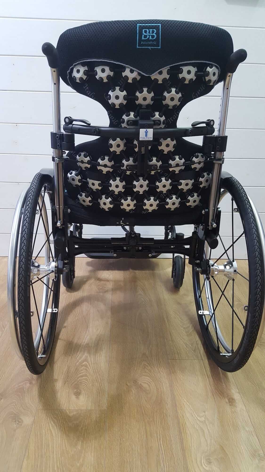 La carrozzina che ne risulta è quindi a misura dell’utente finale garantendo una migliore postura senza dover ricorrere a cuscini riduttori o altro per compensare ad un ausilio per esempio troppo largo.