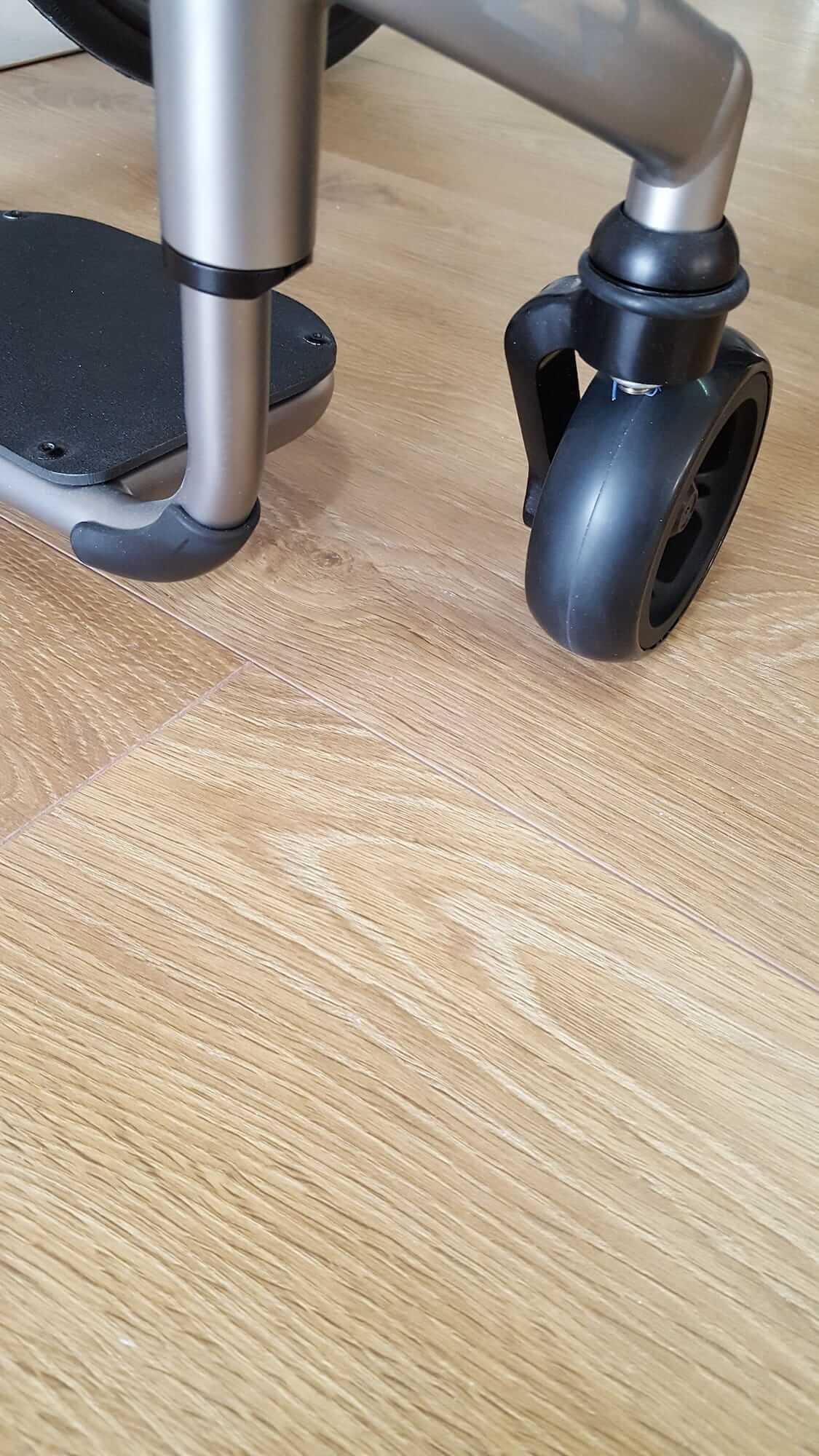Grazie al dispositivo FreeWheel le ruotine anteriori si alzano da terra rendendo più facile e confortevole il superamento di ostacoli e sconnessioni. Questo dispositivo può essere applicato con facilità dai genitori per le loro passeggiate e, quando non serve, può essere comunque portato con se attaccandolo allo schienale della carrozzina.